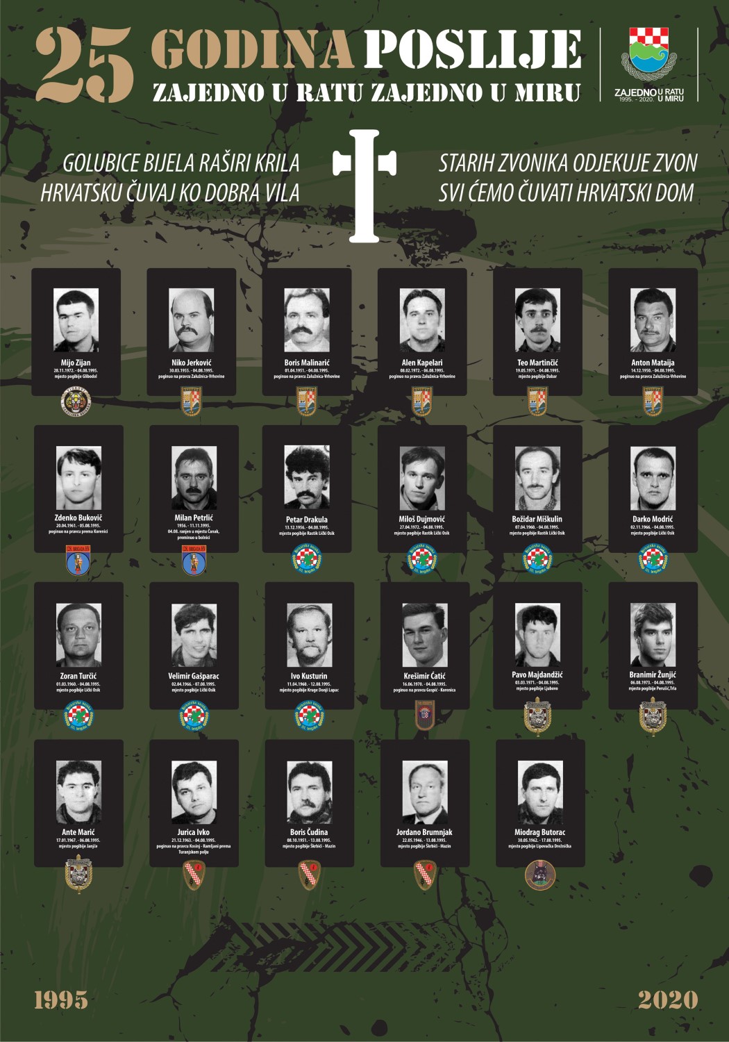 Njihove fotografije i postrojbe čiji su bili pripadnici prikazani su na jednom od panoa. Specifičnost izložbe je i to da je na jednom od panoa prikazan ratni put odnosno pravci djelovanja tih postrojbi u VRO “Oluja”. U izložbi se može vidjeti i povjesnica Vojno redarstvene operacije “Oluja” koja je napisana i na engleskom jeziku.