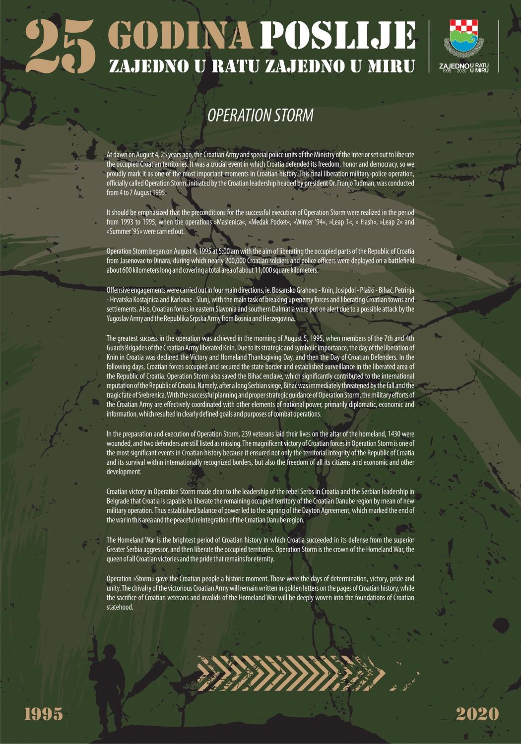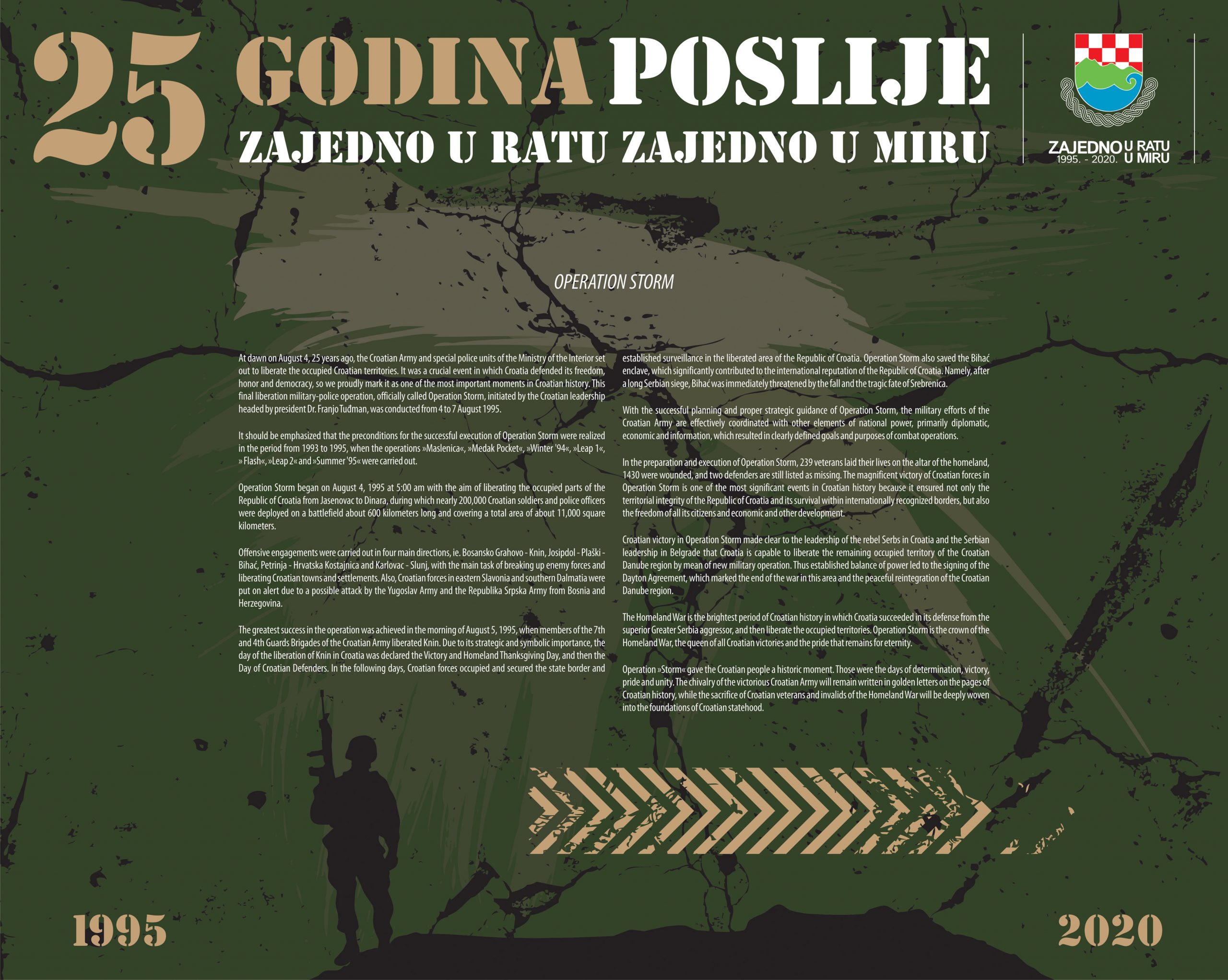 Izložba je bila postavljena u postamentima na Korzu i mogla se je razgledati od 03. – 10. kolovoza 2020. godine. Izložba prikazuje ljude i postrojbe iz Primorsko goranske županije koje su sudjelovale u konačnom oslobađanju naše Domovine u Vojno redarstvenoj operaciji “Oluja”.